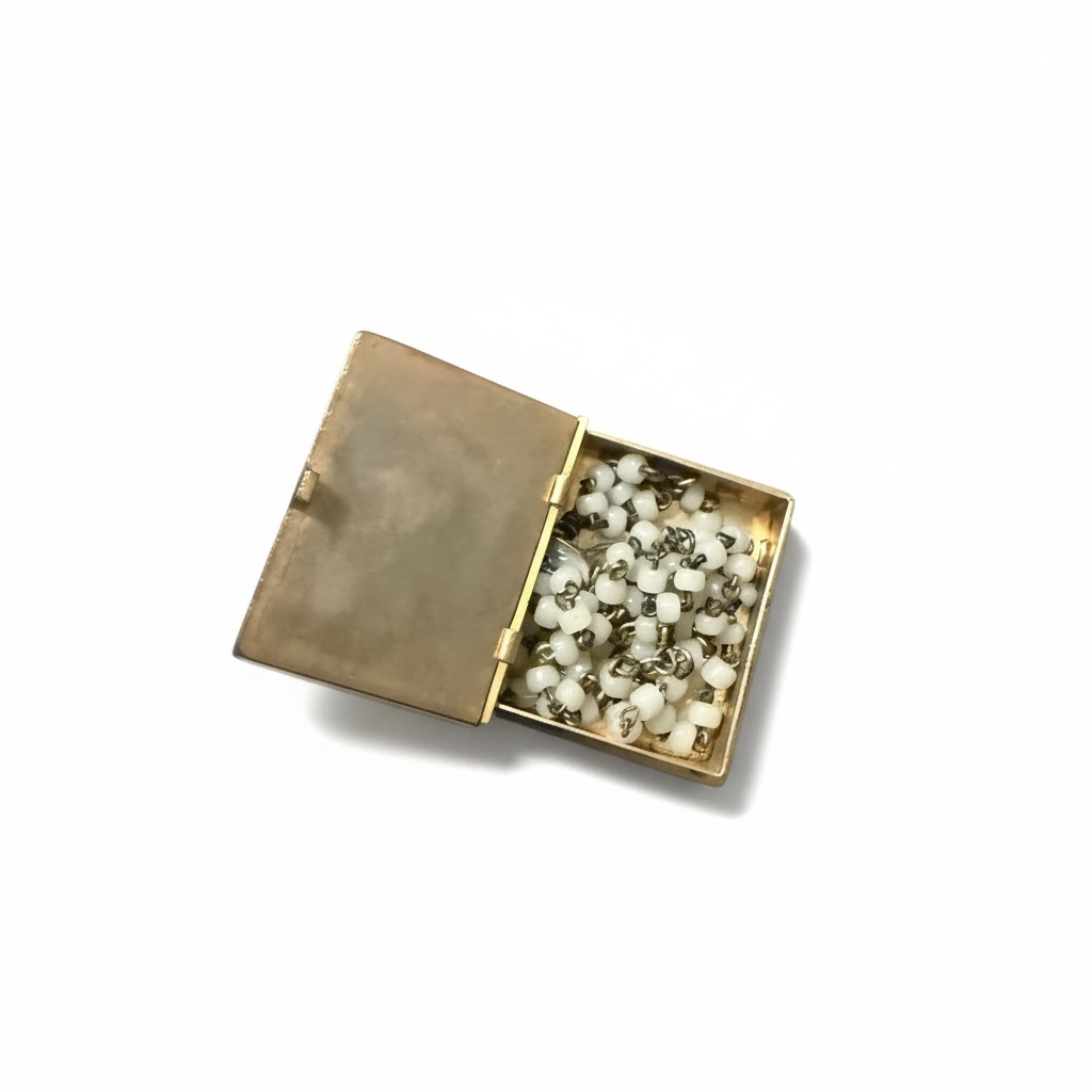A beautiful and meaningful vintage Bible charm that opens to reveal a delicate miniature rosary tucked safely inside. Thoughtfully detailed and rich in symbolism, this piece feels like a tiny keepsake of faith meant to be worn close to the heart.